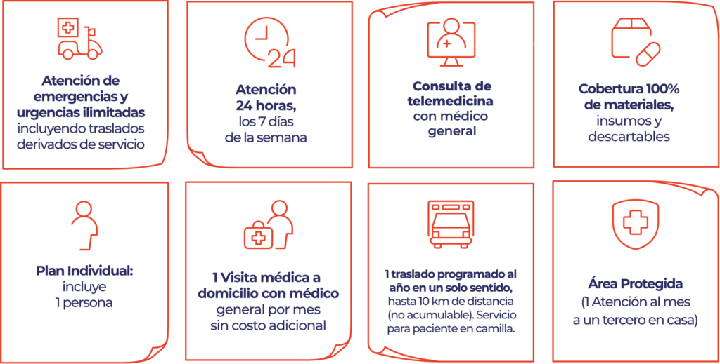 Es la tranquilidad de saber que usted nunca está realmente solo, porque cuenta con un servicio que trabaja 24/7, con ambulancias de soporte avanzado, telemedicina y atención médica en casa cuando lo necesite.